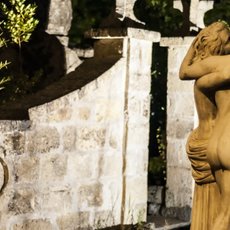 Il suo nome è dovuto alla statua che la affianca di due innamorati che si baciano...